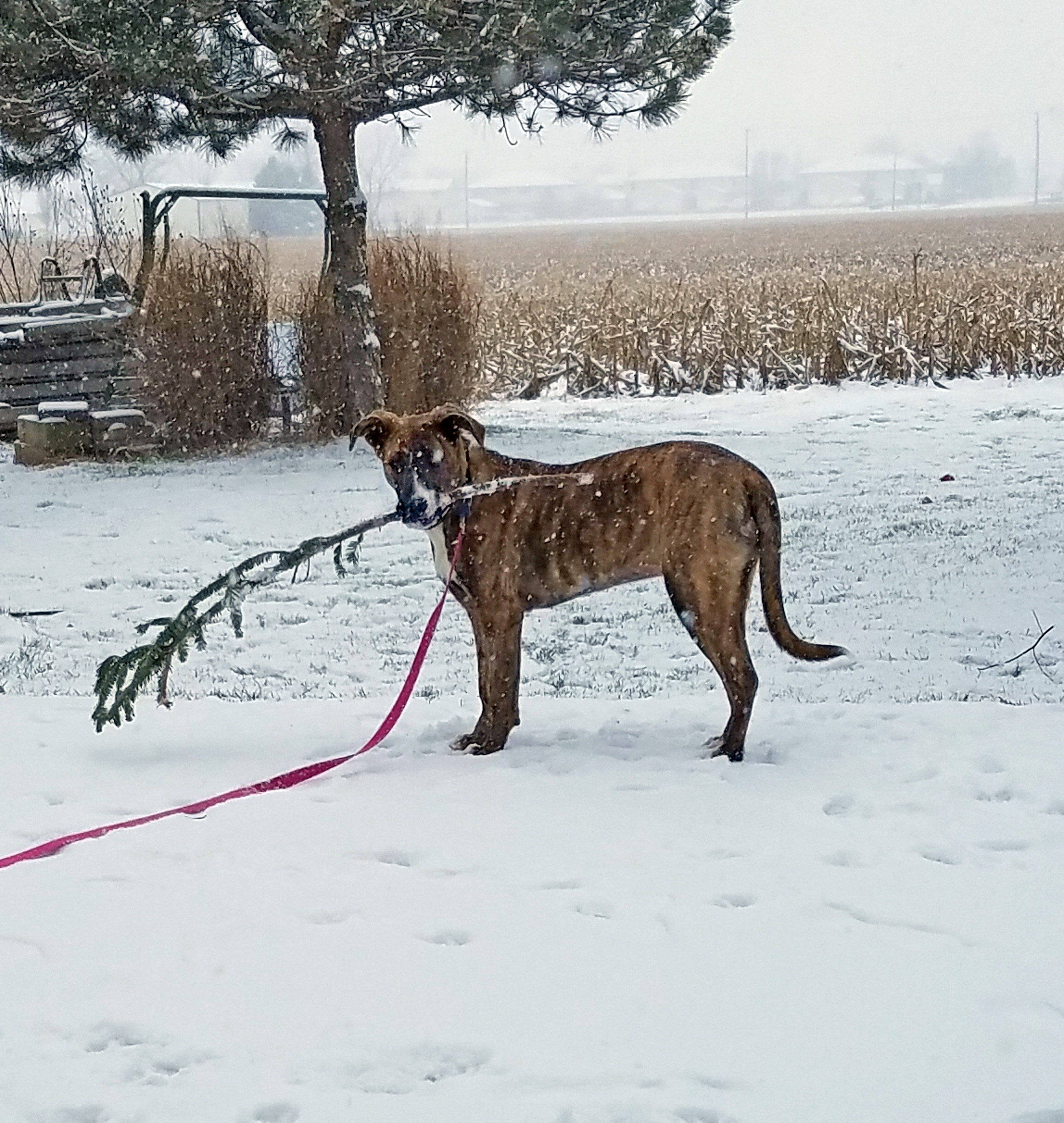 Kira snow with a stick